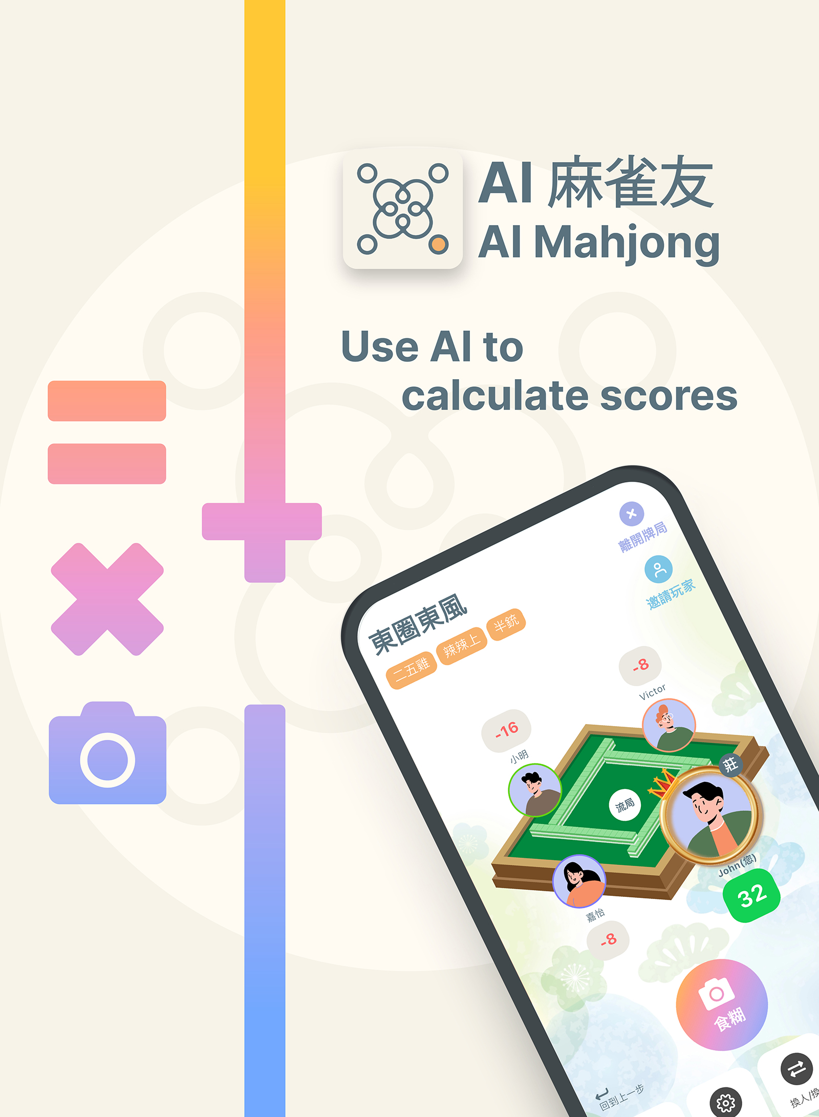 「AI麻雀友」提供港式麻雀互動式計分平台,只需掃描麻雀,AI自動為您計算番數,實時更新您和雀友們的分數,讓您告別繁瑣的計算,享受輕鬆計分體驗。
